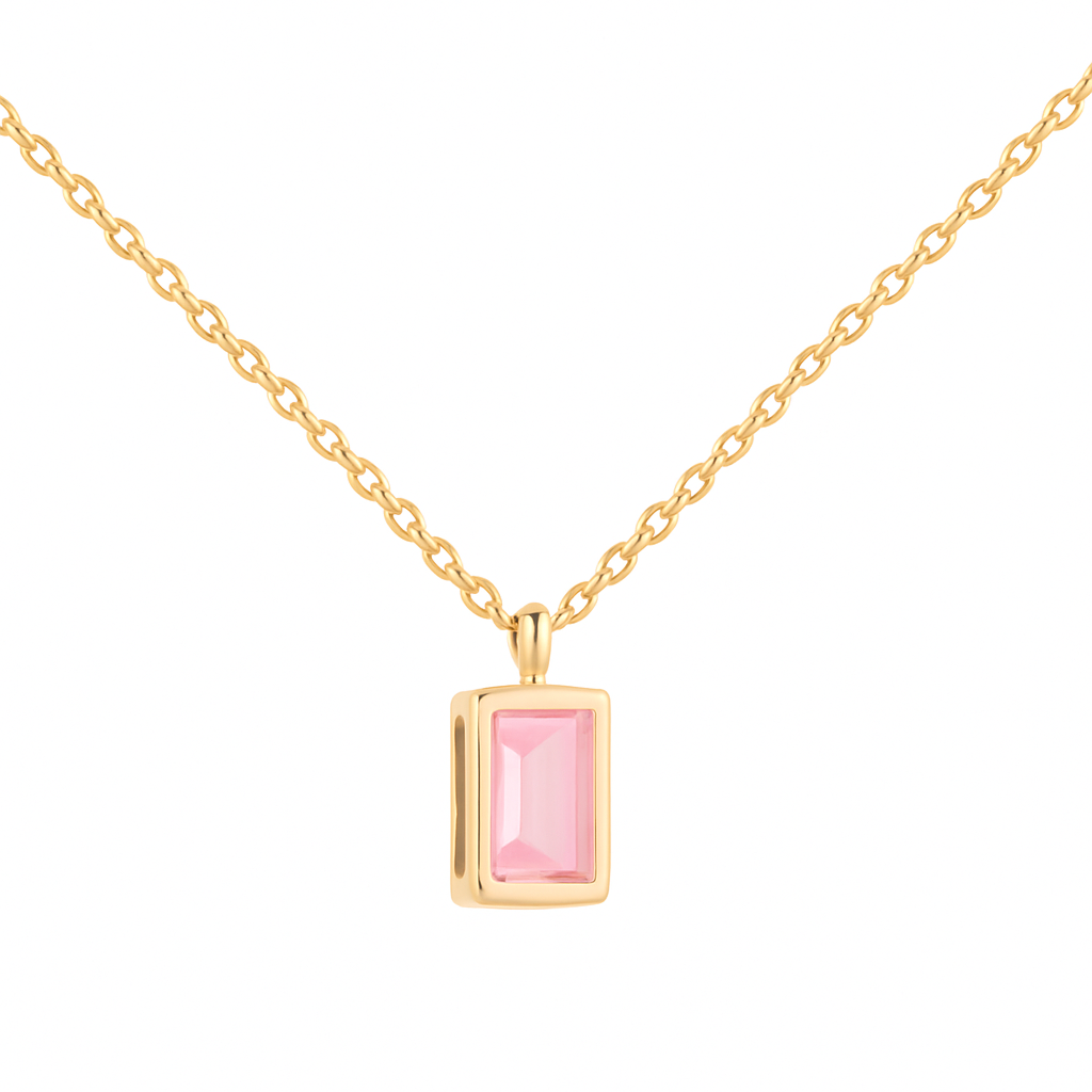 Gargantilha corrente cadeado de 45cm com retângulo em ouro 18k e pedra rubelita.