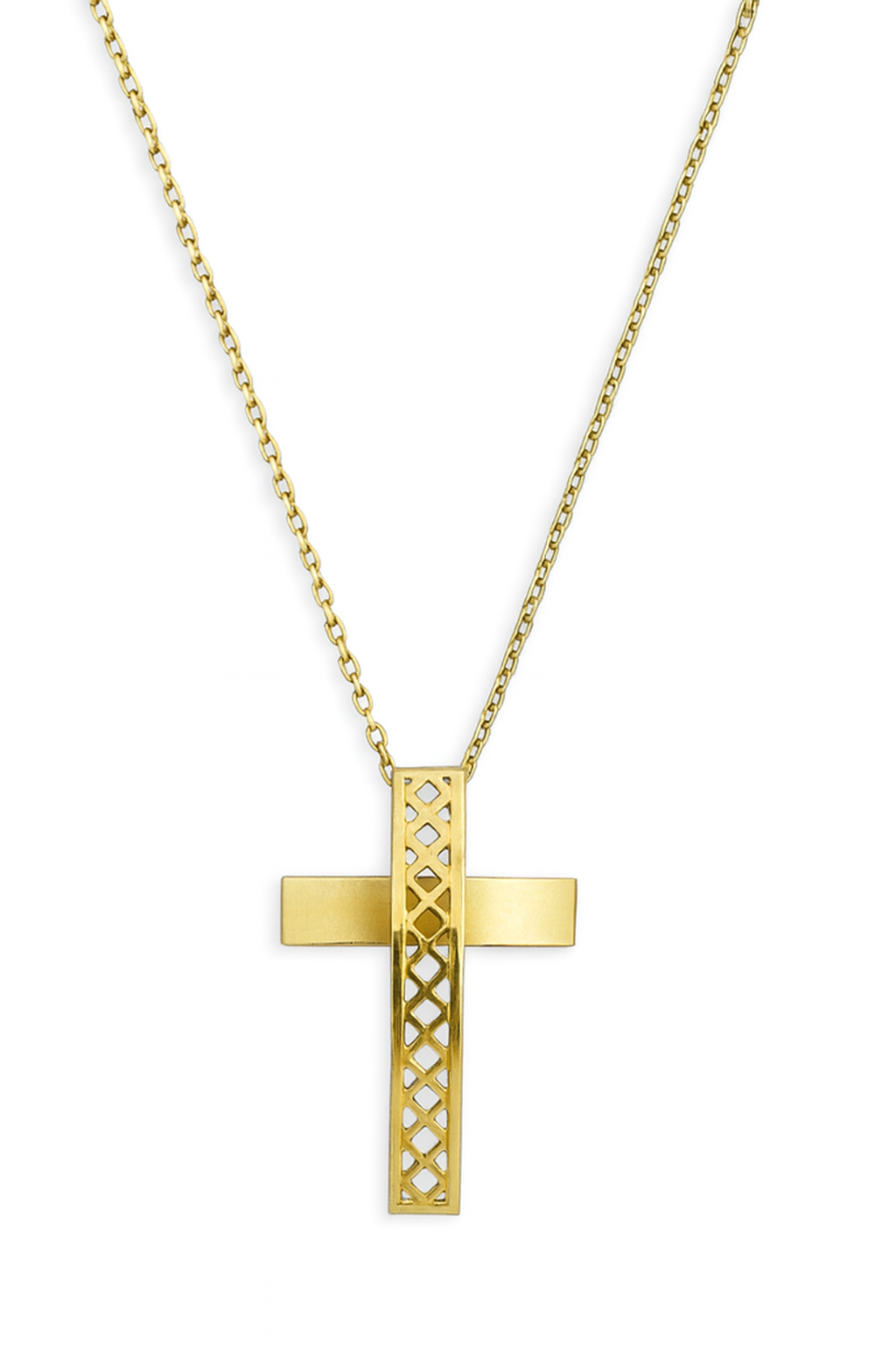 Gargantilha cruz tela corrente cartier de 60cm em ouro 18k.