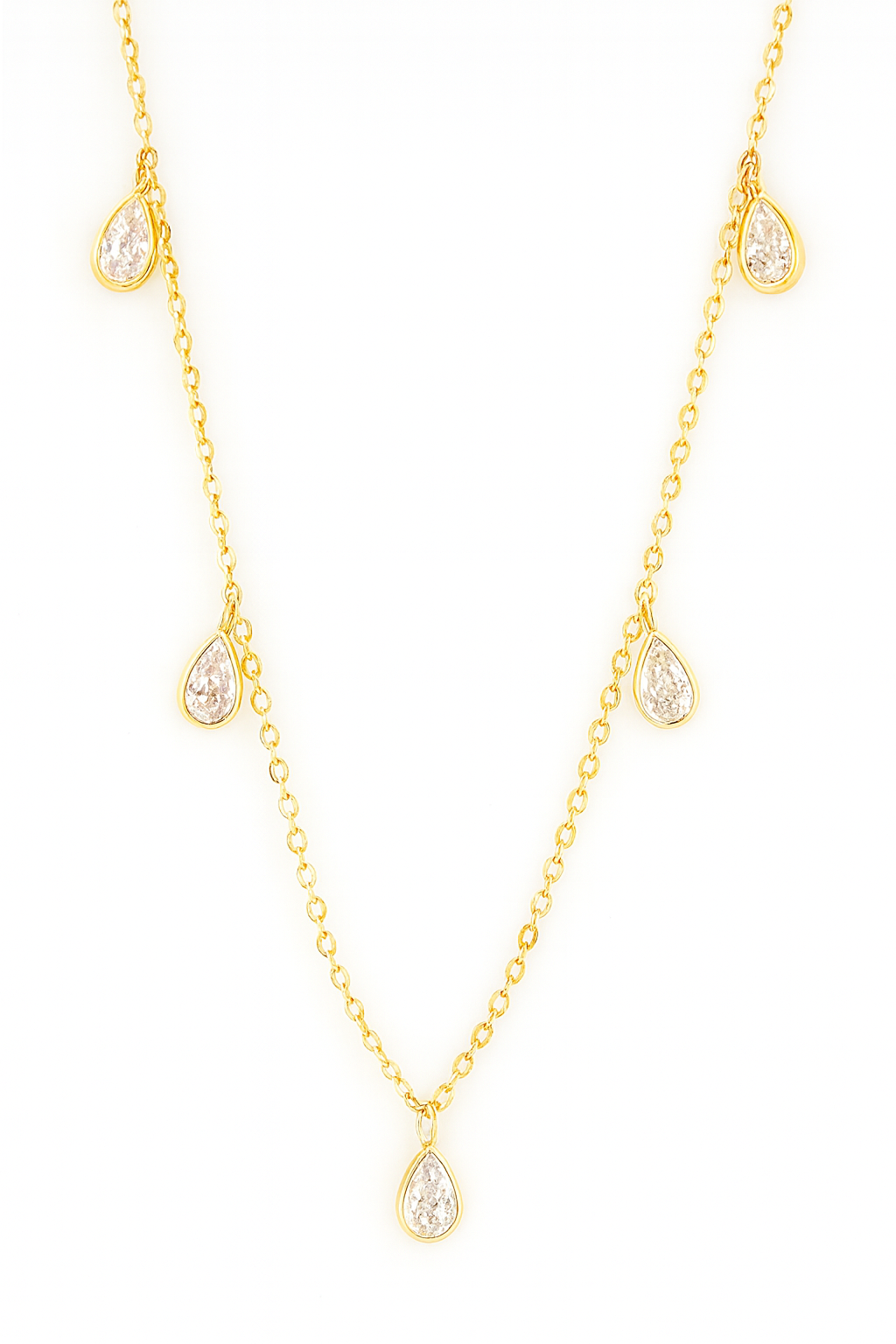 Gargantilha corrente bailarina de 45cm com 5 gotas em ouro 18k com zircônias.