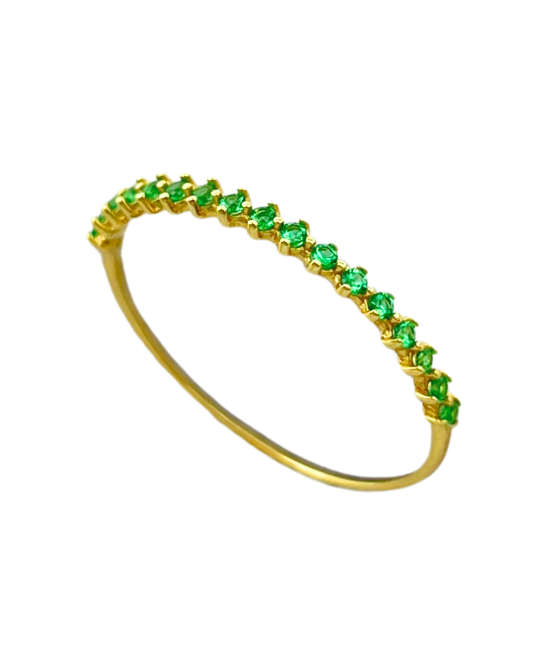 Meia aliança em ouro 18k com 17 zircônias.