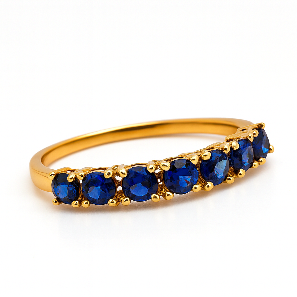 Meia aliança em ouro 18k com 4 garras e 7 zircônias.