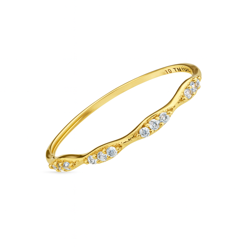 Meia aliança em ouro 18k com 15 zircônias.