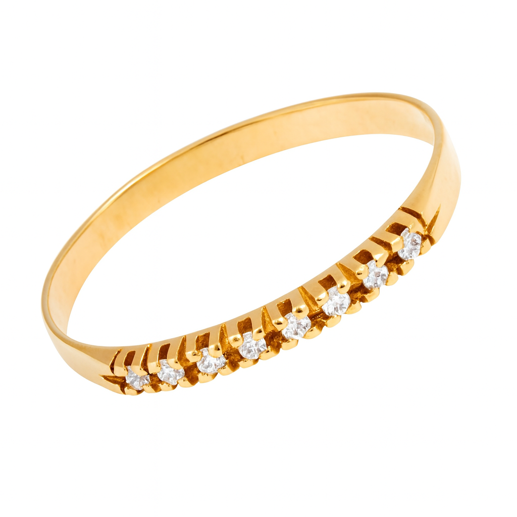Meia aliança em ouro 18k com 9 brilhantes de 0.5pt.