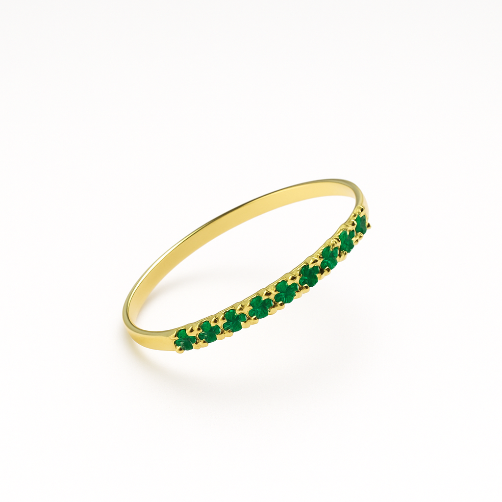 Meia aliança em ouro 18k com 9 esmeraldas de 0.5pt.