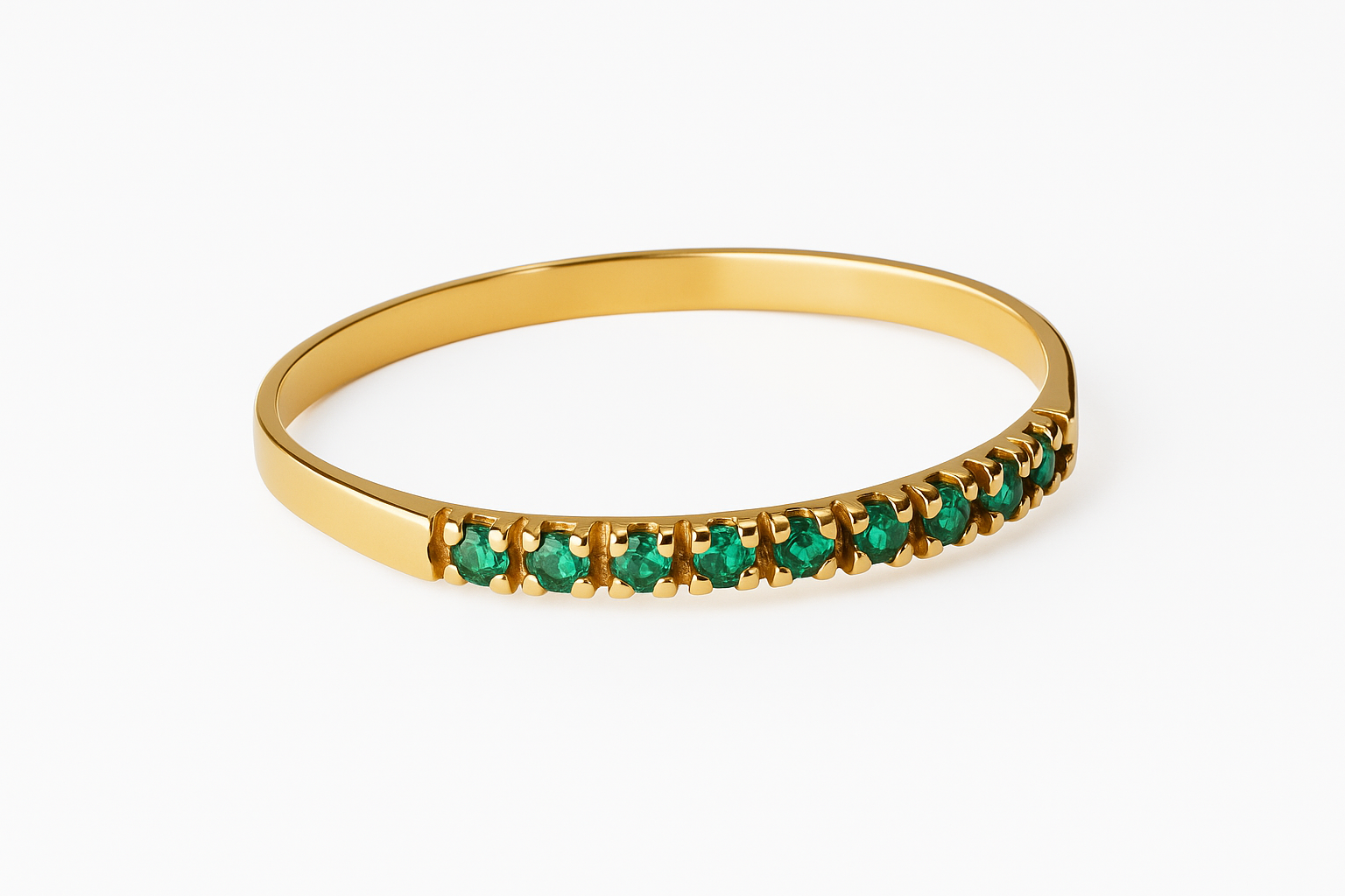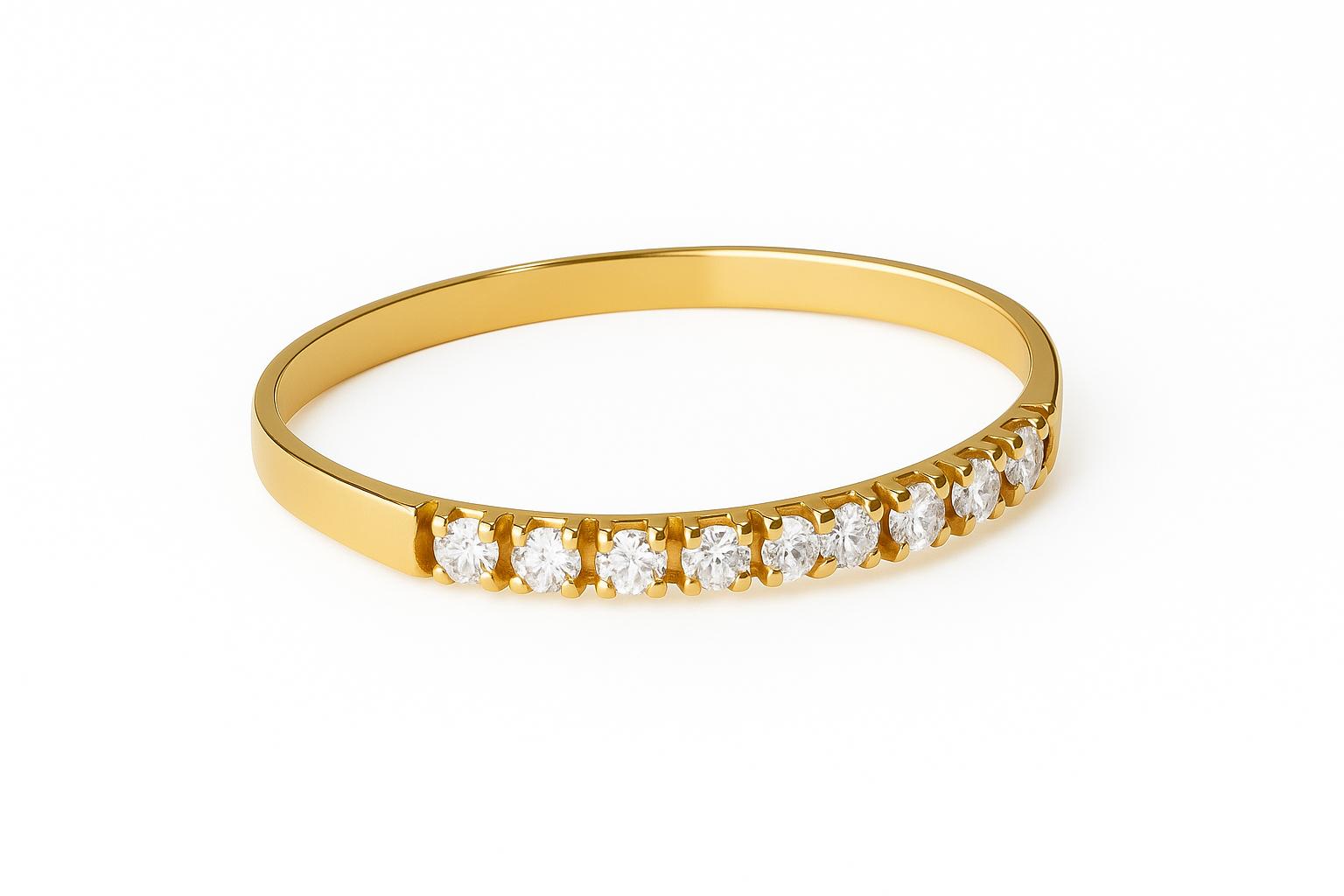 Meia aliança em ouro 18k com 9 zircônias.
