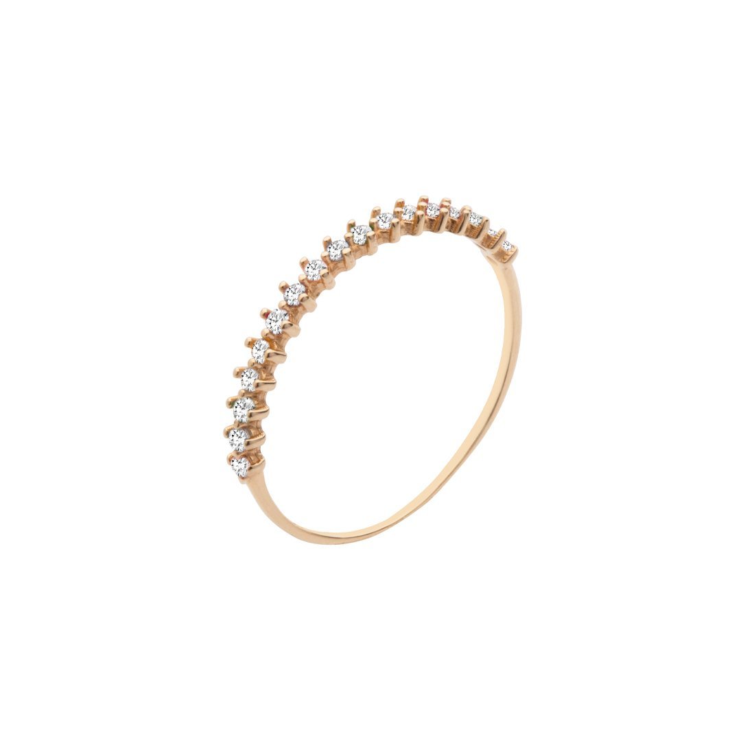 Meia aliança ouro 10k com zircônias.