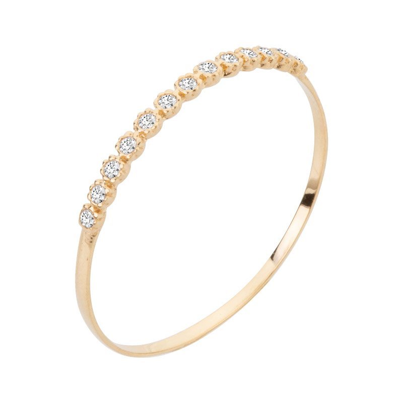 Meia aliança flor com 13 zircônias.