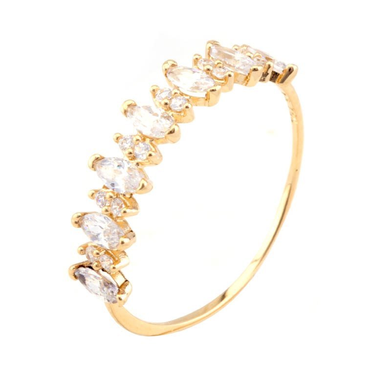 Meia aliança em ouro 10k com 7 navetes e 12 pedras redondas em zircônias.