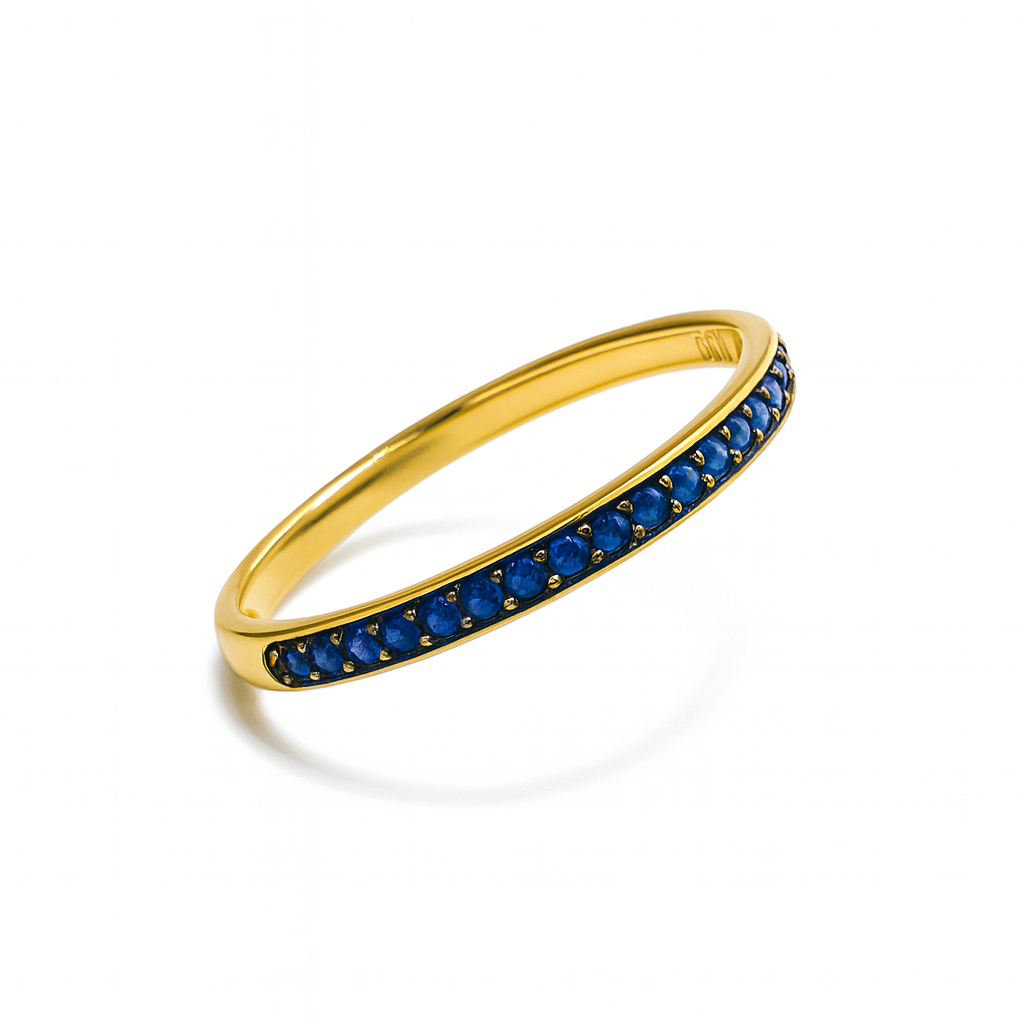 Meia aliança em ouro 18k com 19 safiras.