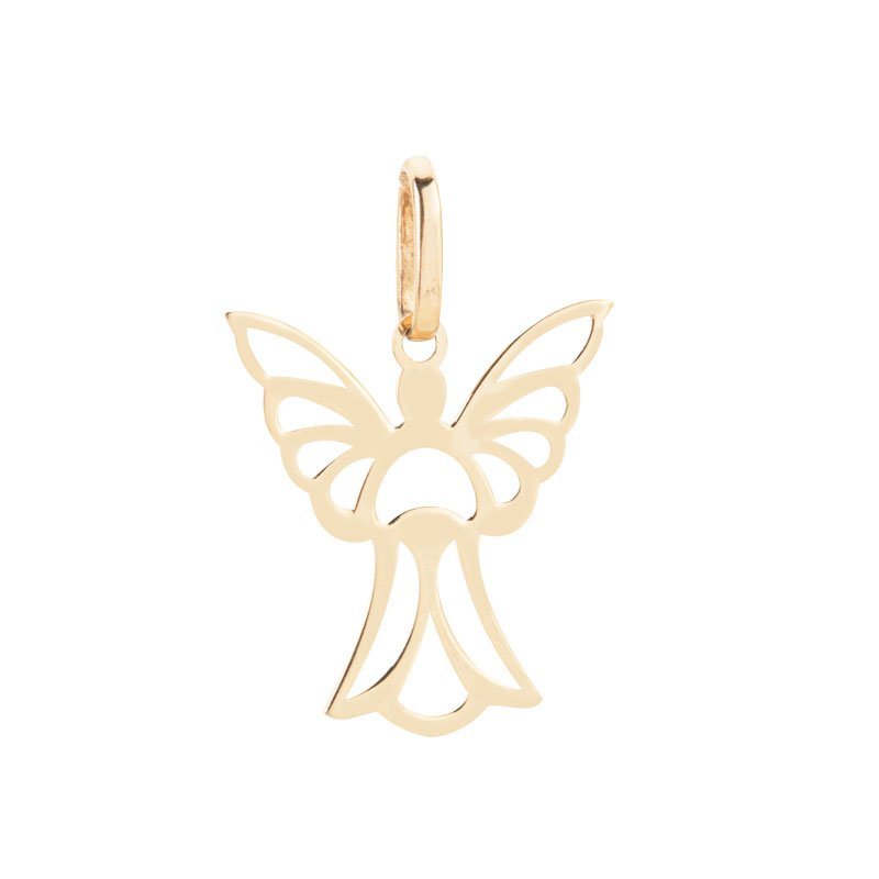 Pingente anjo vazado de 14mm em ouro 18k.