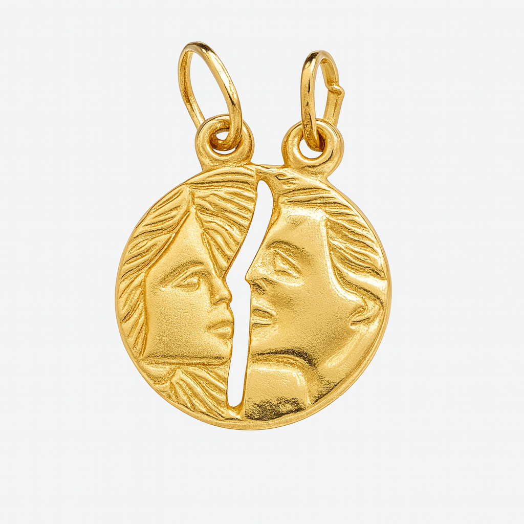 Pingente cara metade redondo em ouro 18k.