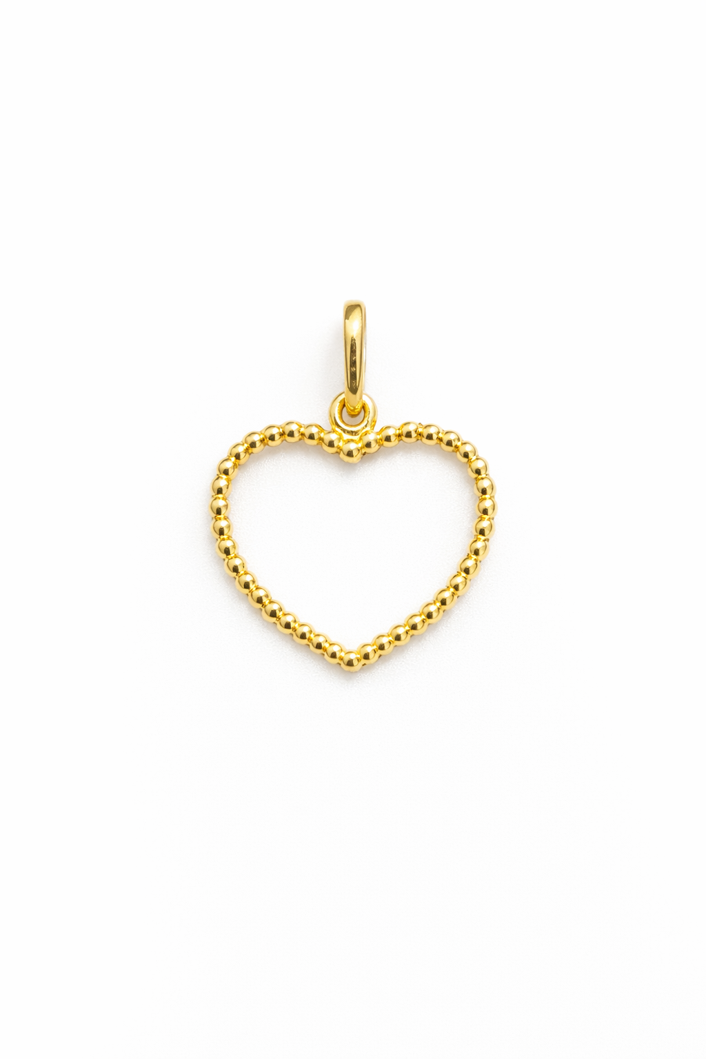 Pingente coração bolinhas vazado em ouro 18k.