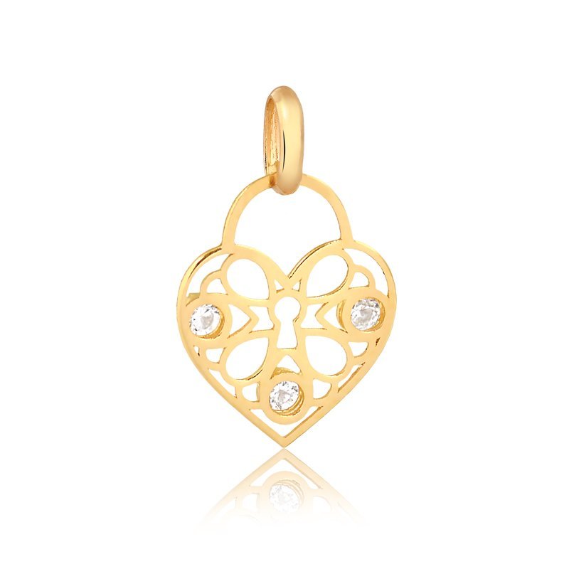 Pingente coração fios em ouro 18k com 3 zircônias.
