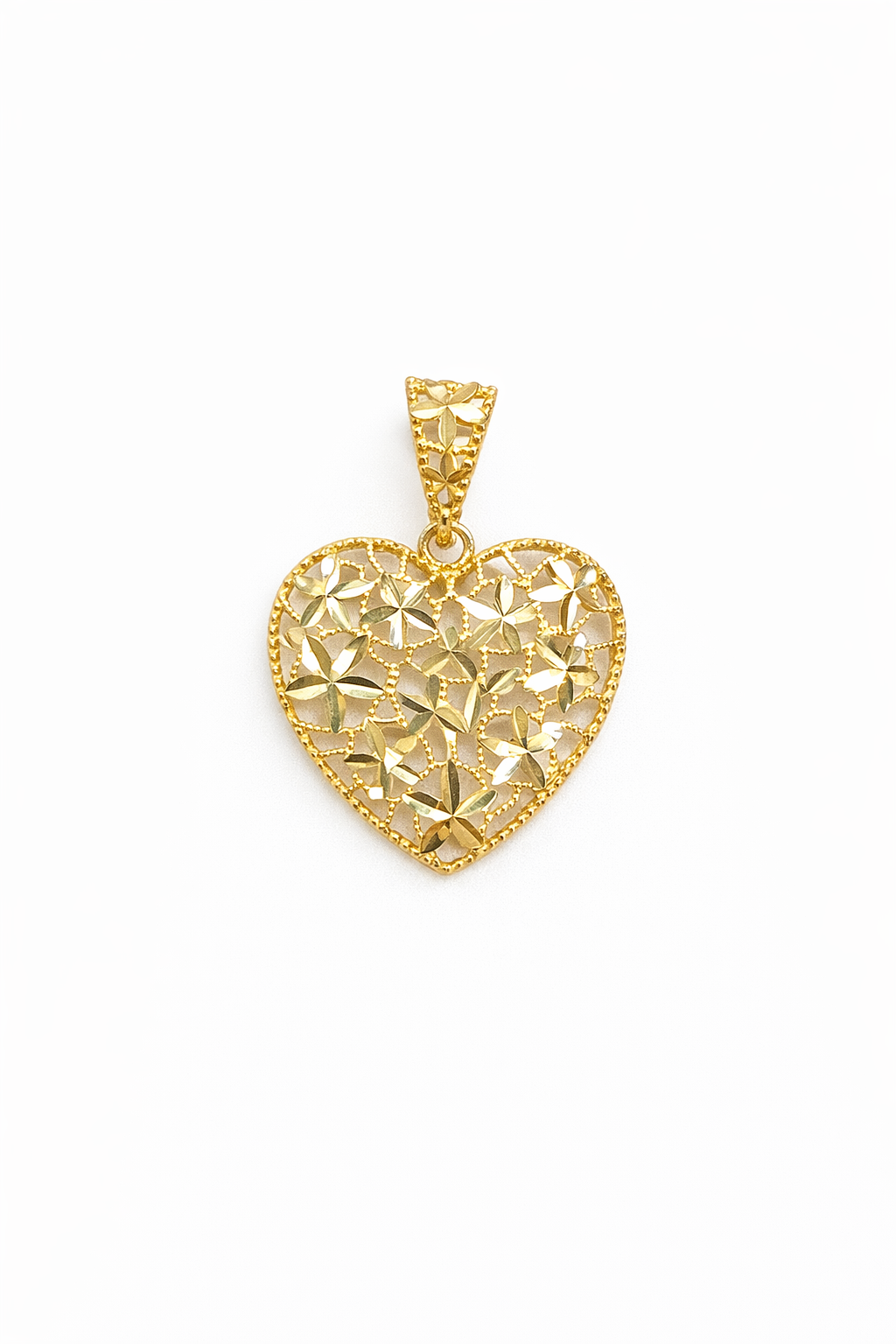 Pingente coração diamantado M com flores em ouro 18k.