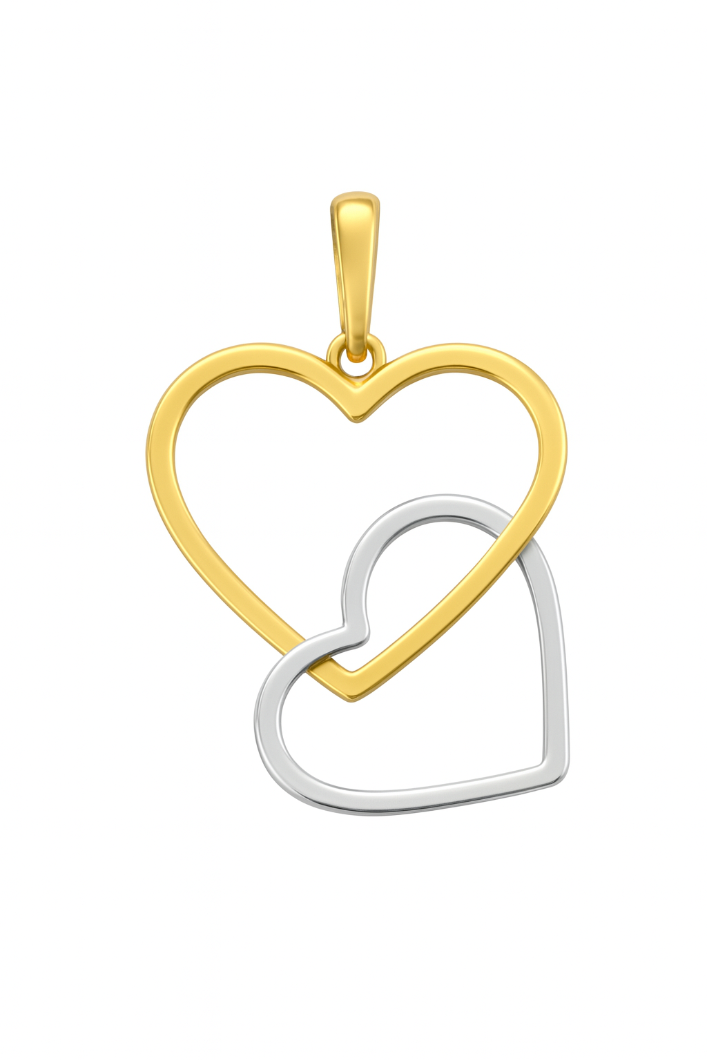 Pingente corações pendurados em ouro amarelo 18k e ouro branco.