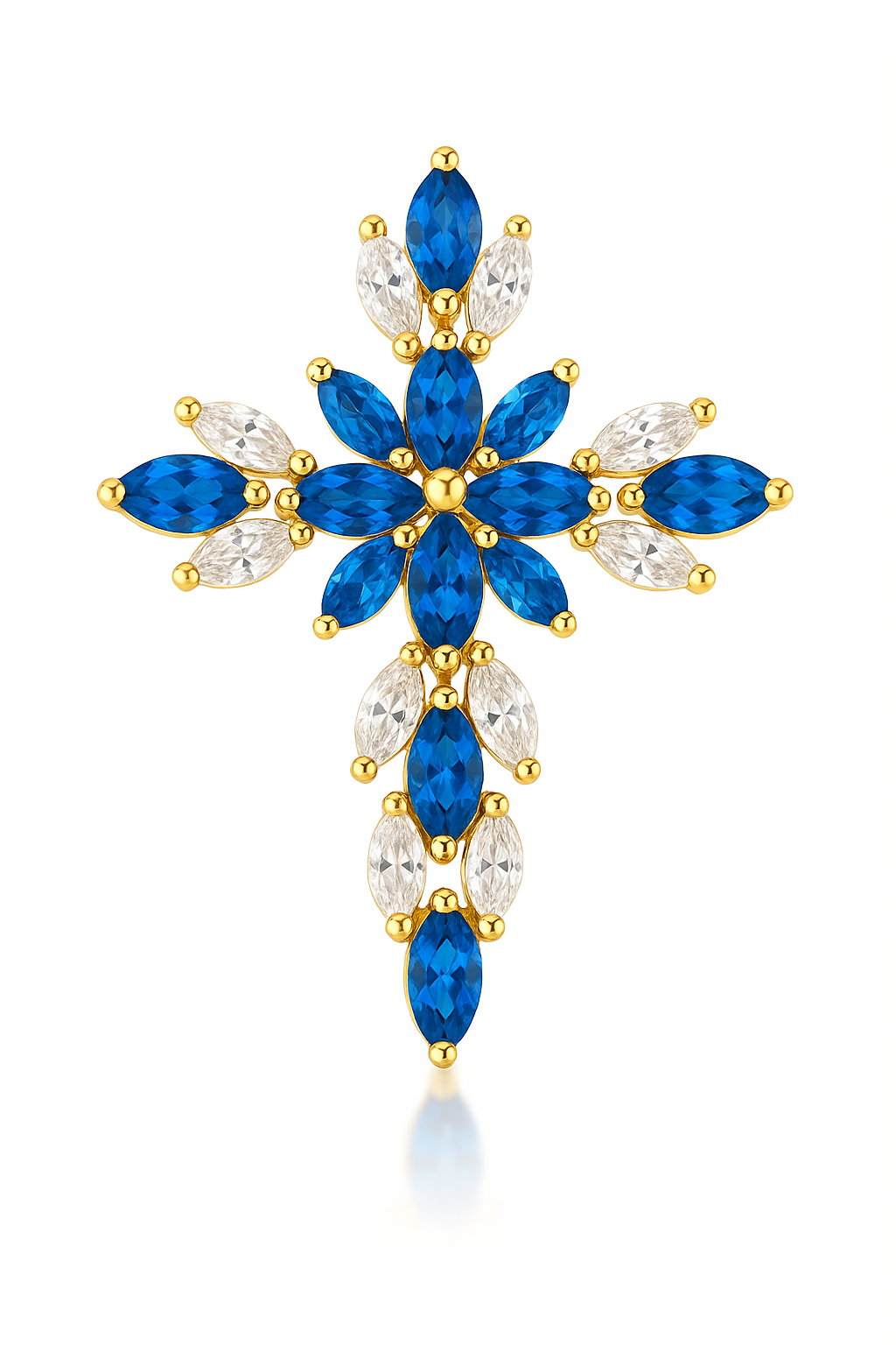 Pingente cruz em ouro 18k com zircônias navetes.