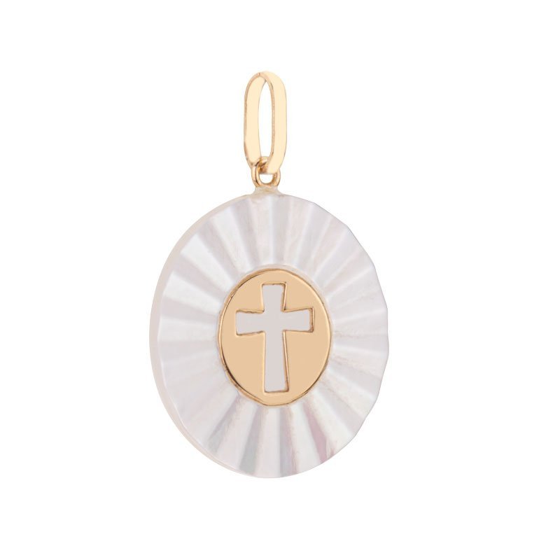Pingente cruz em ouro 18k com madrepérola.