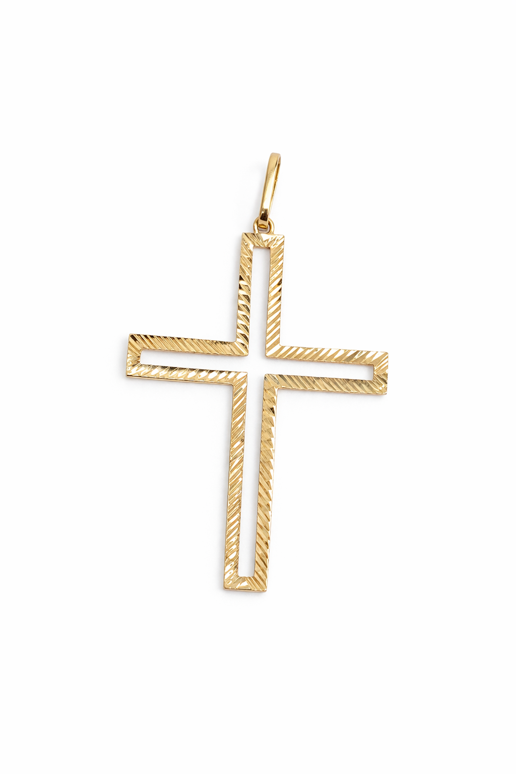 Pingente cruz vazada diamantada em ouro 18k.