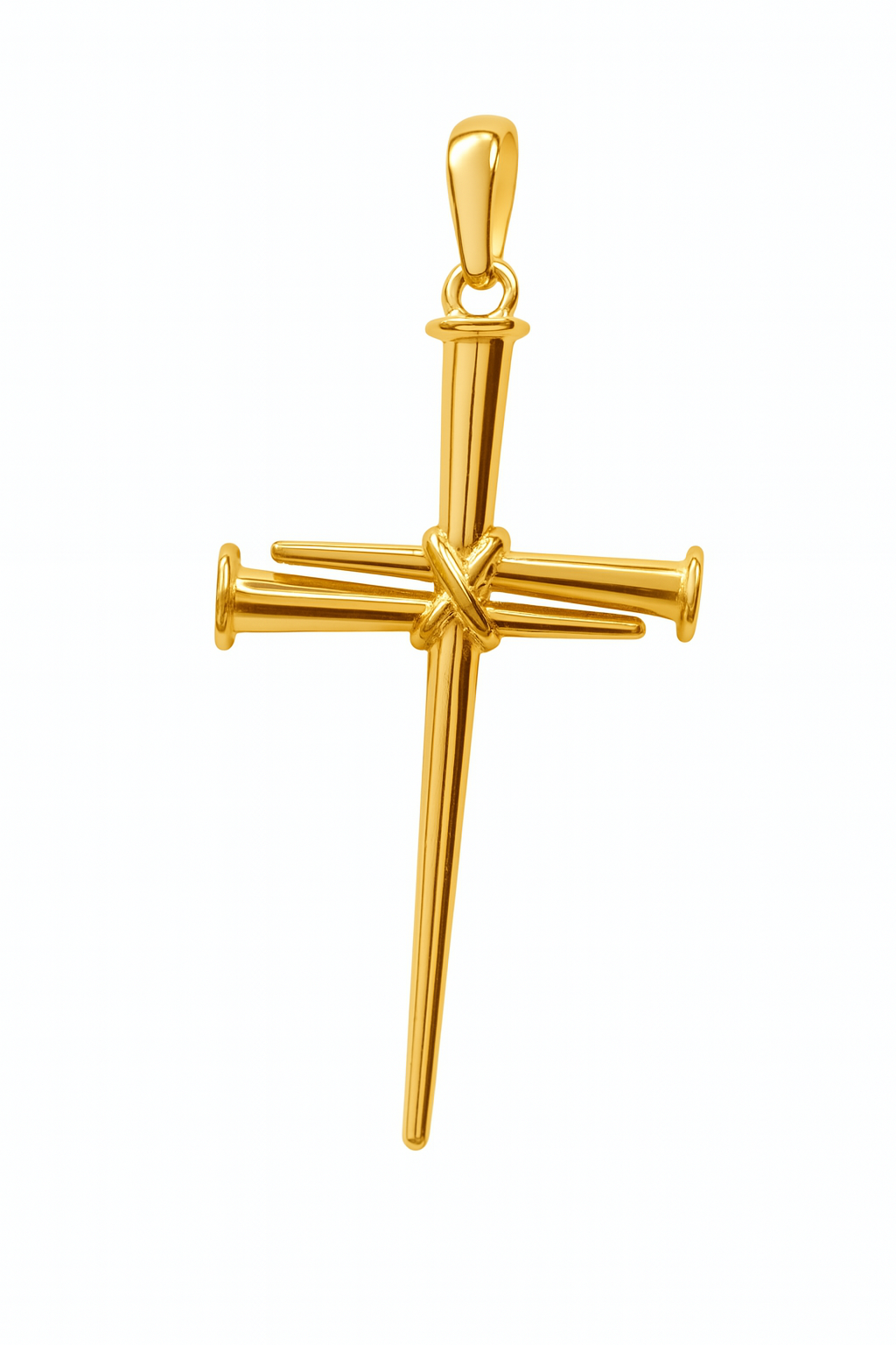 Pingente cruz pregos amarelos em ouro 18k.