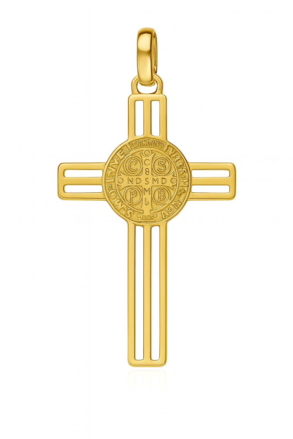 Pingente cruz São Bento M em ouro 18k.