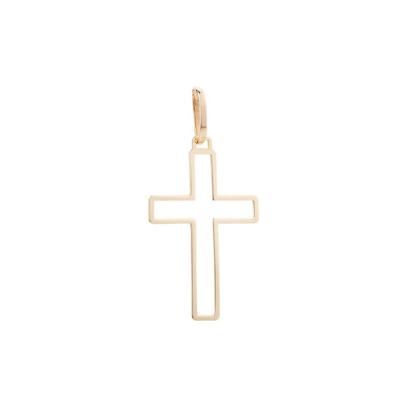 Pingente cruz vazada P em ouro amarelo 18k.