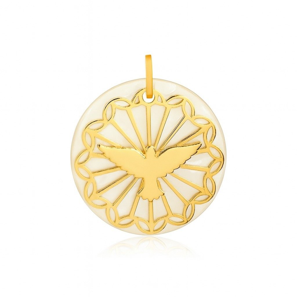 Pingente Espírito Santo em ouro 18k com madrepérola.