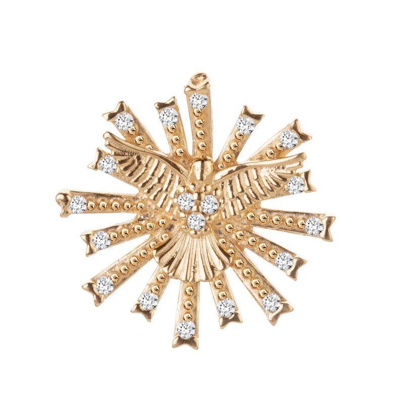 Pingente Espírito Santo em ouro 18k com zircônias.