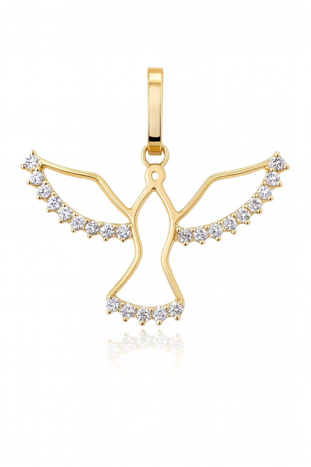 Pingente Espírito Santo vazado em ouro 18k com zircônias.