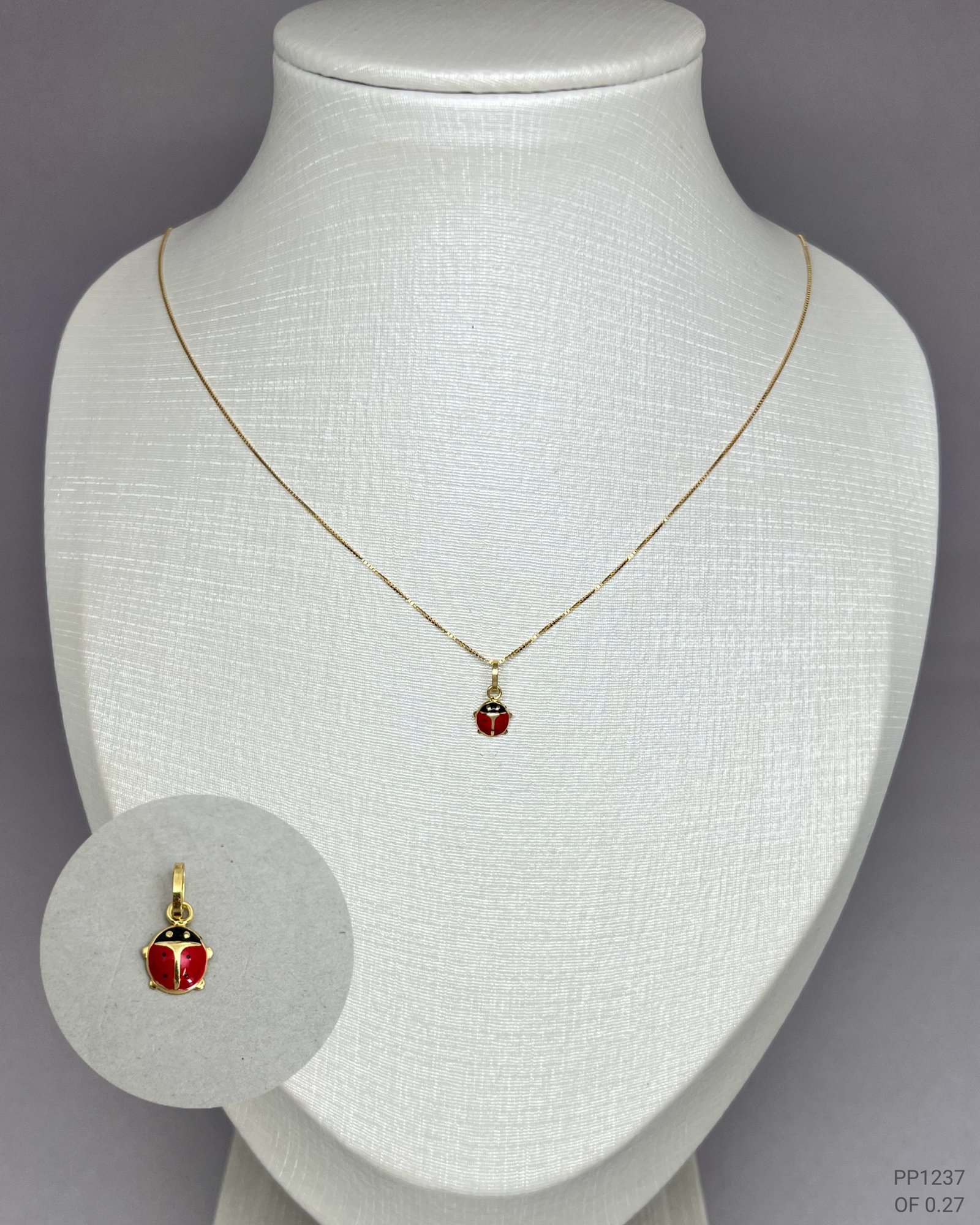 Pingente Joaninha em ouro 18k e zircônias.