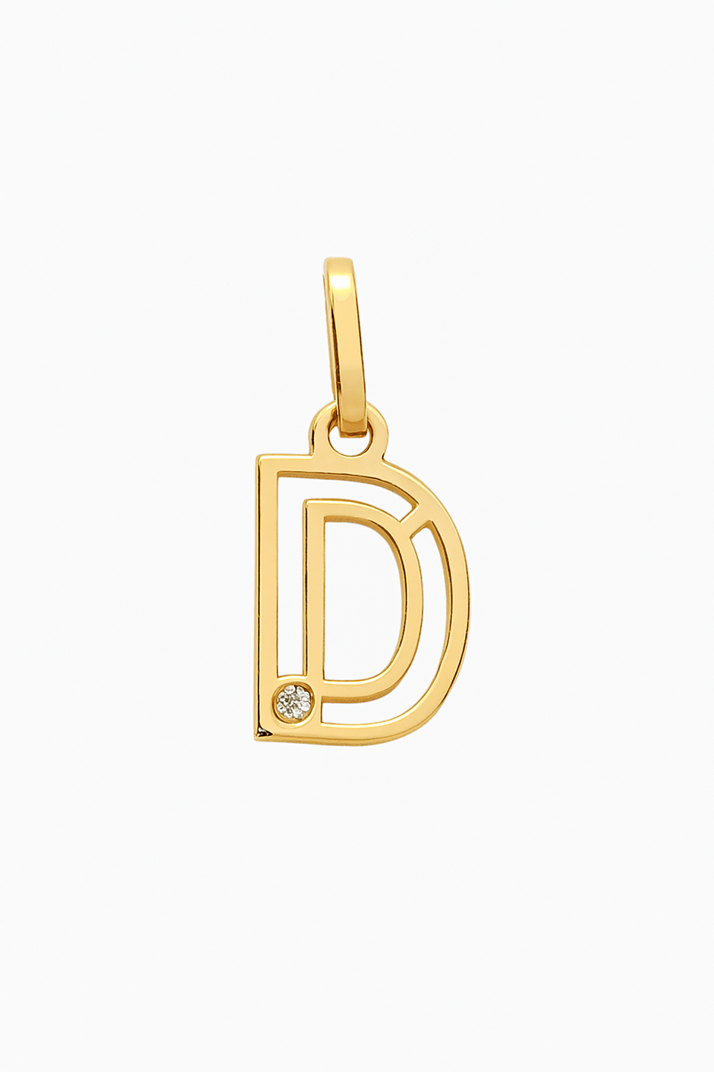 Pingente letra D vazado em ouro 18k com 1 brilhante.