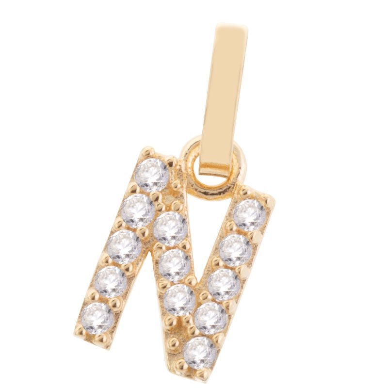 Pingente letra N de 5,5mm em ouro 18k com zircônias.