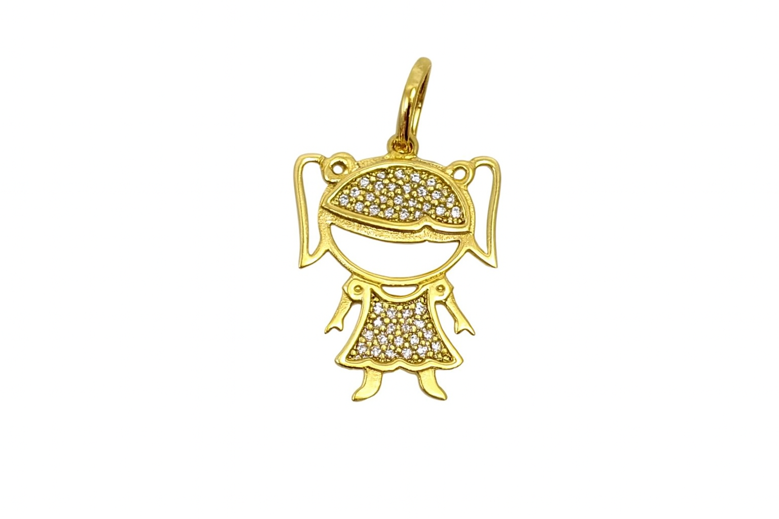 Pingente menina em ouro 18k cravejada em zircônias.