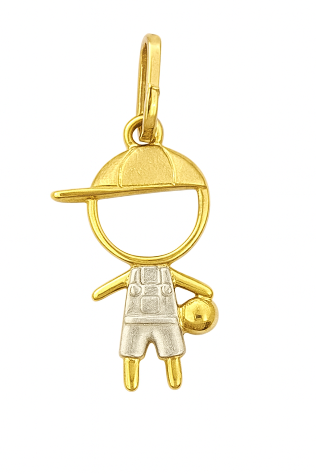 Pingente menino em ouro amarelo 18k e ouro branco.
