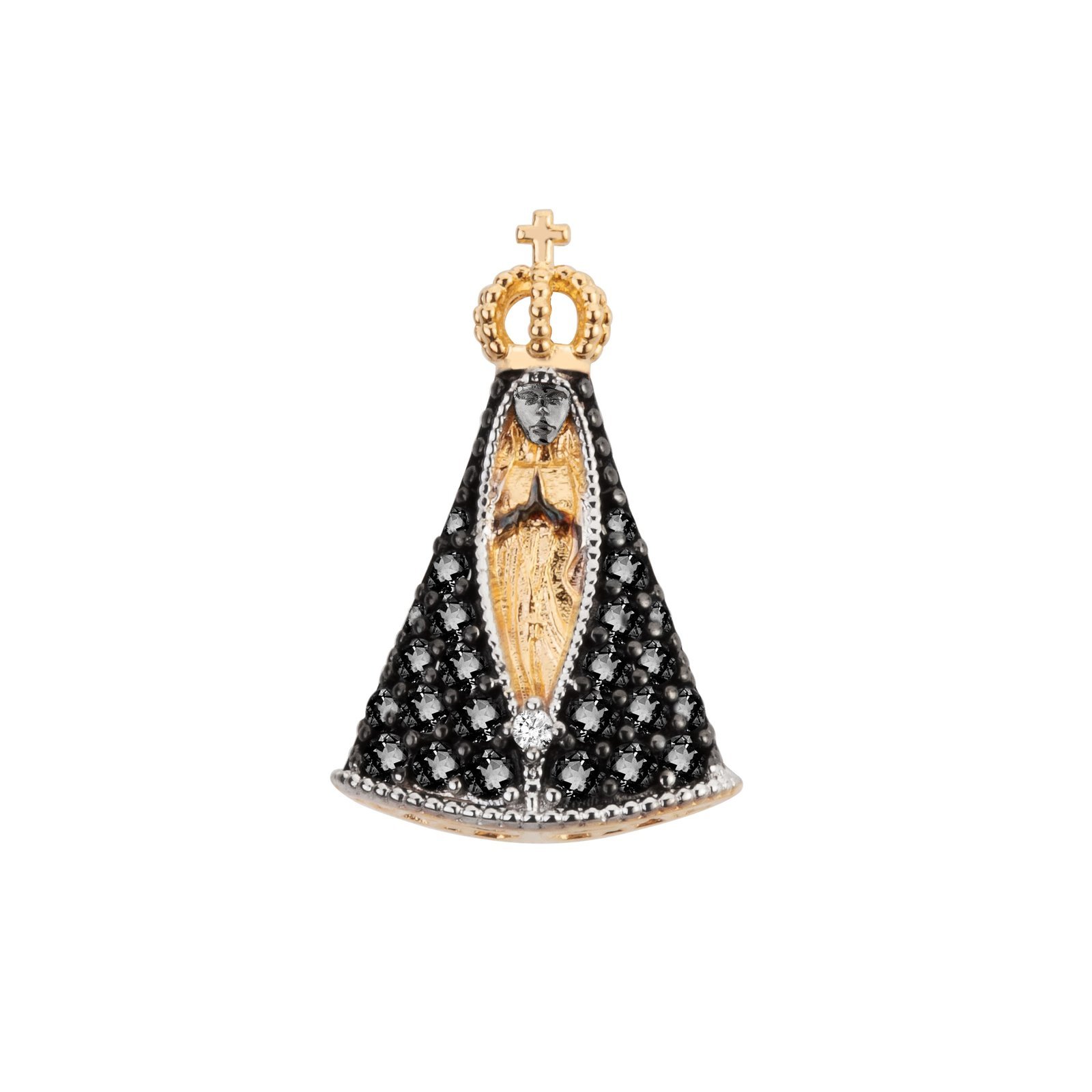 Pingente Nossa Senhora Aparecida M em ouro 18k com zircônias.