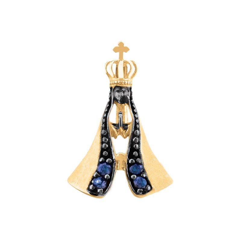 Pingente Nossa Senhora Aparecida em ouro 18k com 4 safiras.