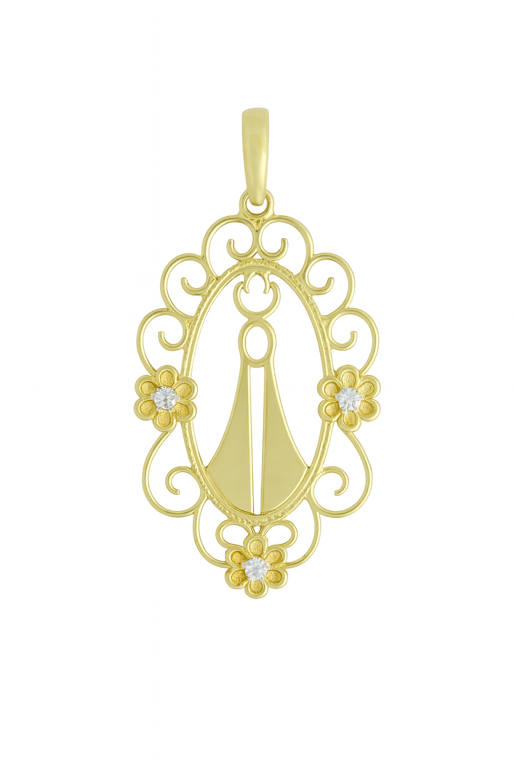 Pingente Nossa Senhora Aparecida em ouro 18k com 3 brilhantes.