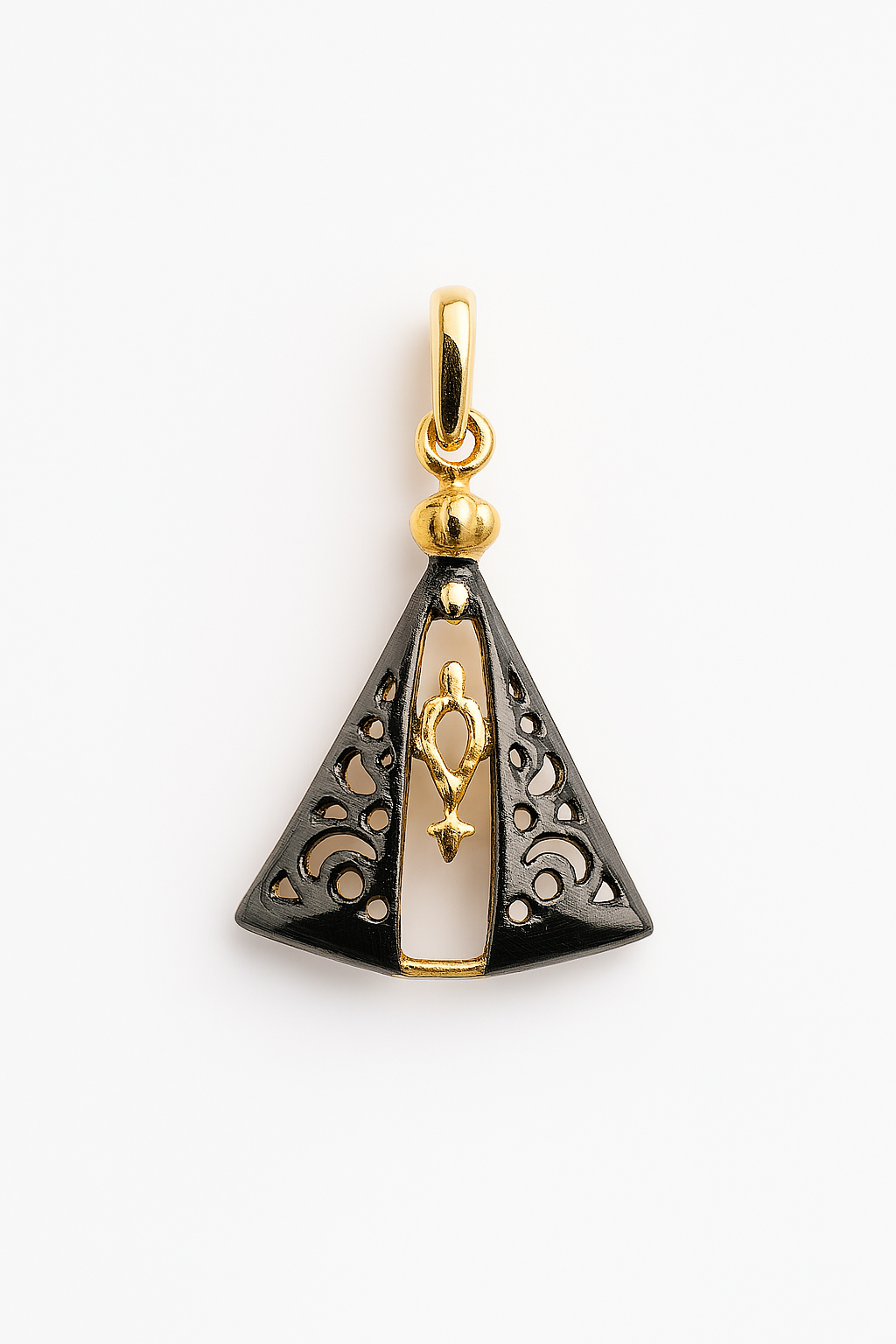 Pingente Nossa Senhora Aparecida em ouro 18k com banho de ródio.