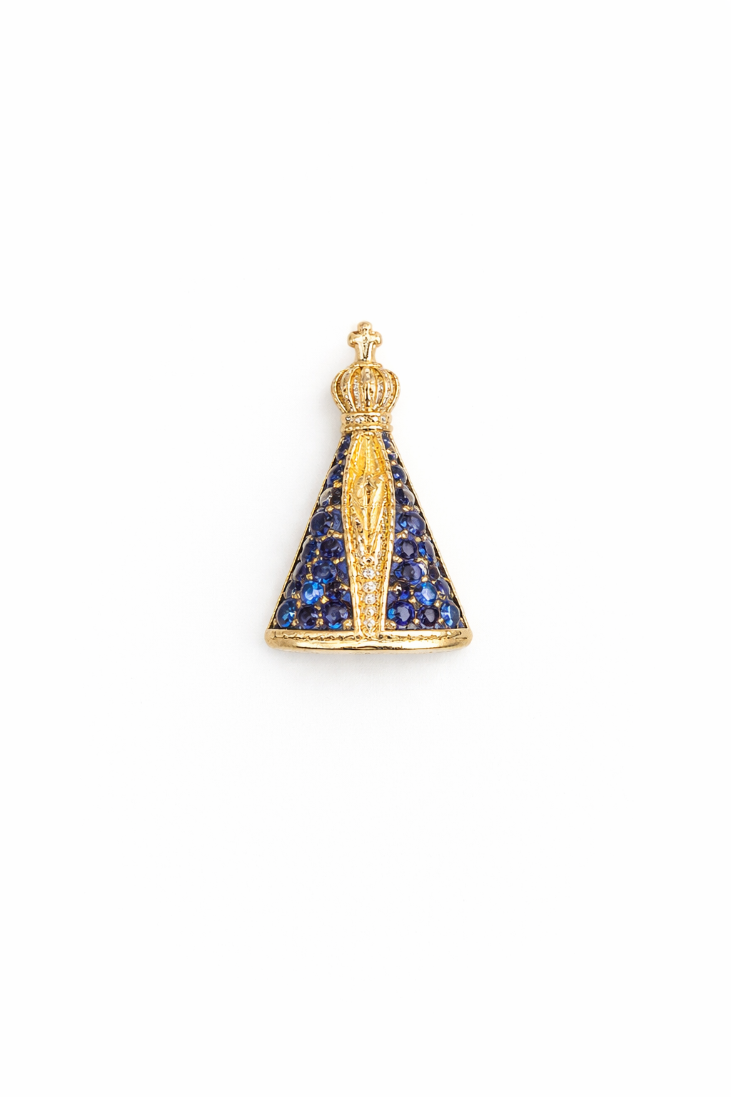 Pingente Nossa Senhora Aparecida em ouro 18k com zircônias.