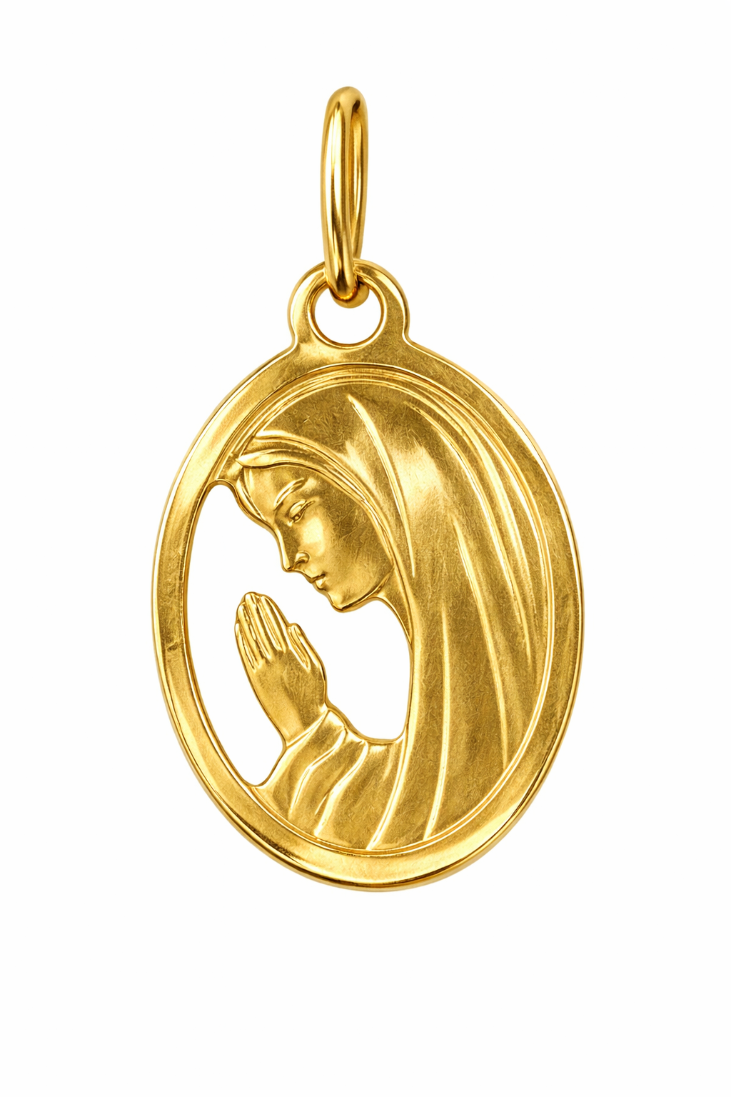 Pingente oval Maria em ouro 18k.
