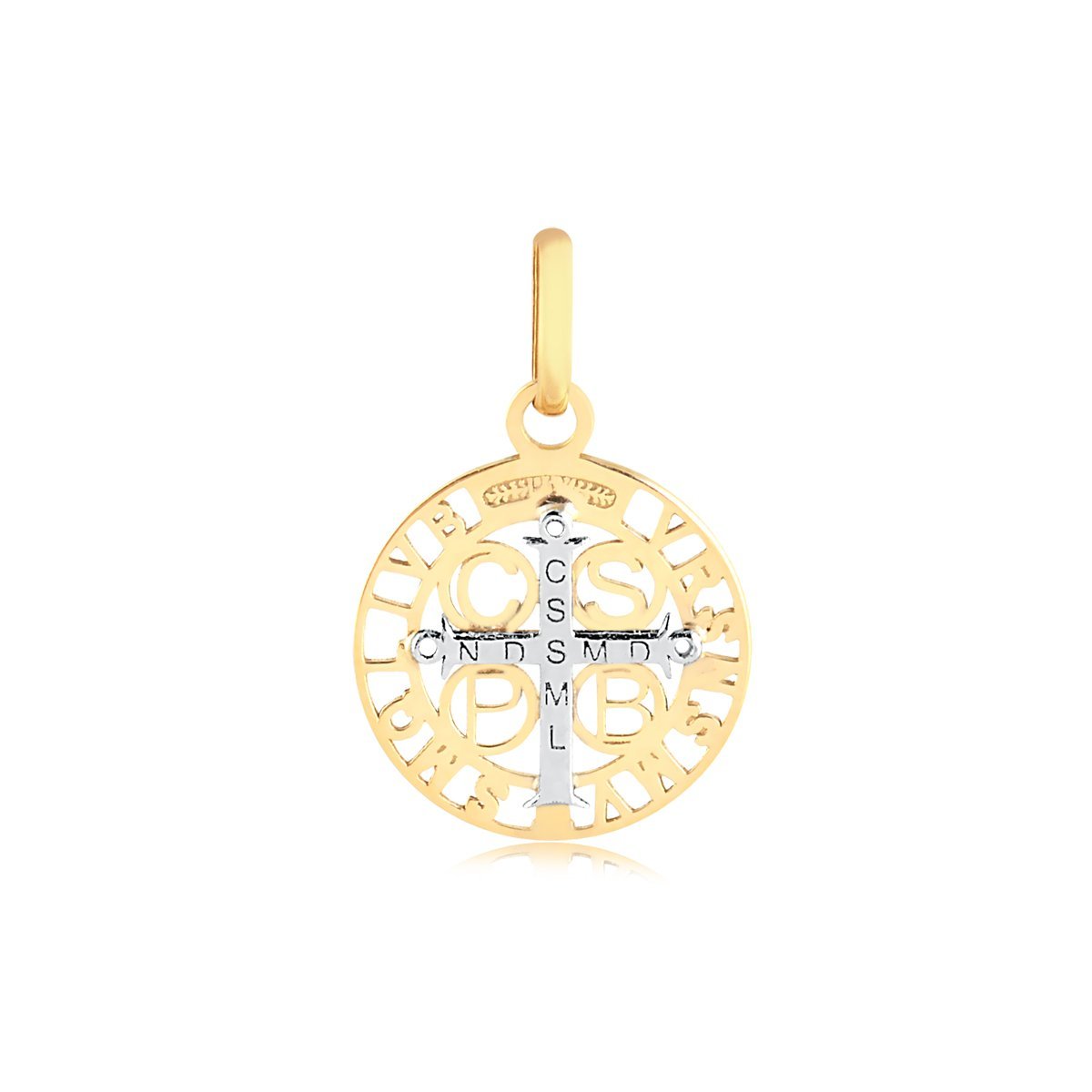 Pingente São Bento bicolor em ouro amarelo e ouro branco 10k.