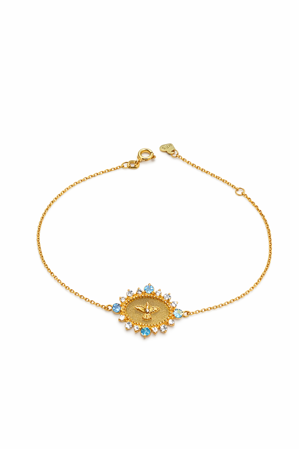 Pulseira Espírito Santo de 17/19cm em ouro 18k rodeado com pedras naturais Topázios Sky.